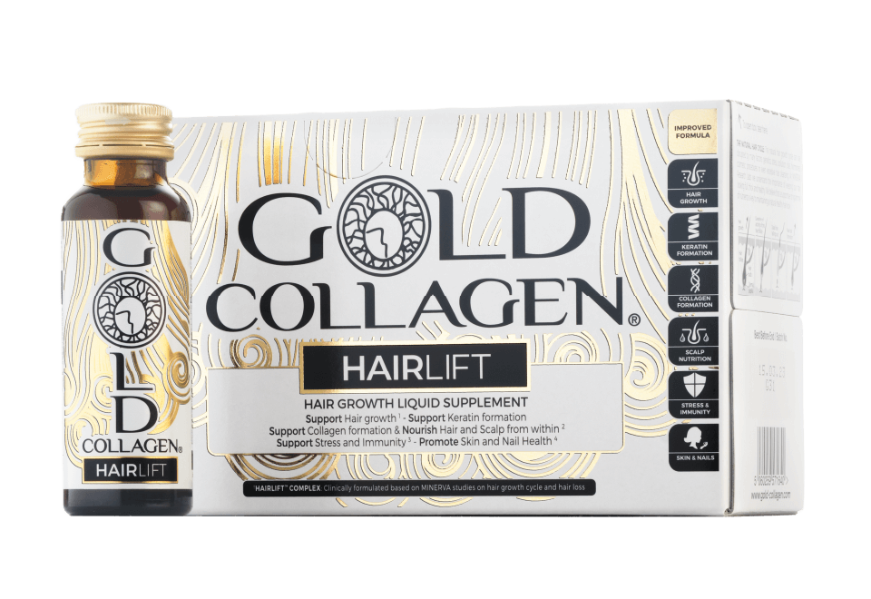 GOLD COLLAGEN® Hairlift este un supliment alimentar premium sub formă de băutură, special formulat pentru susținerea sănătății părului și scalpului, reducerea căderii părului și stimularea creșterii firului de păr. Formula sa avansată acționează din interior, oferind nutrienții esențiali necesari pentru întărirea structurii firului de păr și revitalizarea foliculilor piloși.