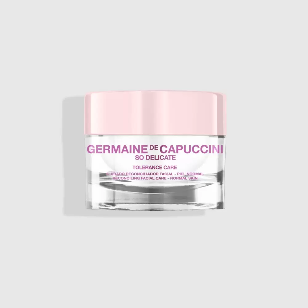 So Delicate Tolerance Care от Germaine de Capuccini — это профессиональный дермокосметический крем, специально разработанный для ухода за чувствительной, реактивной и склонной к покраснениям кожей. Крем эффективно уменьшает ощущение жжения, покалывания, стянутости и раздражения.